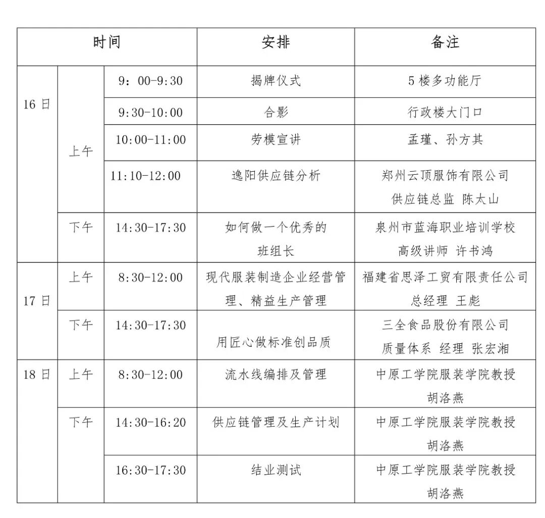 @全体学员 河南服装工匠学院首期班组长、工段长高级培训班 培训须知
