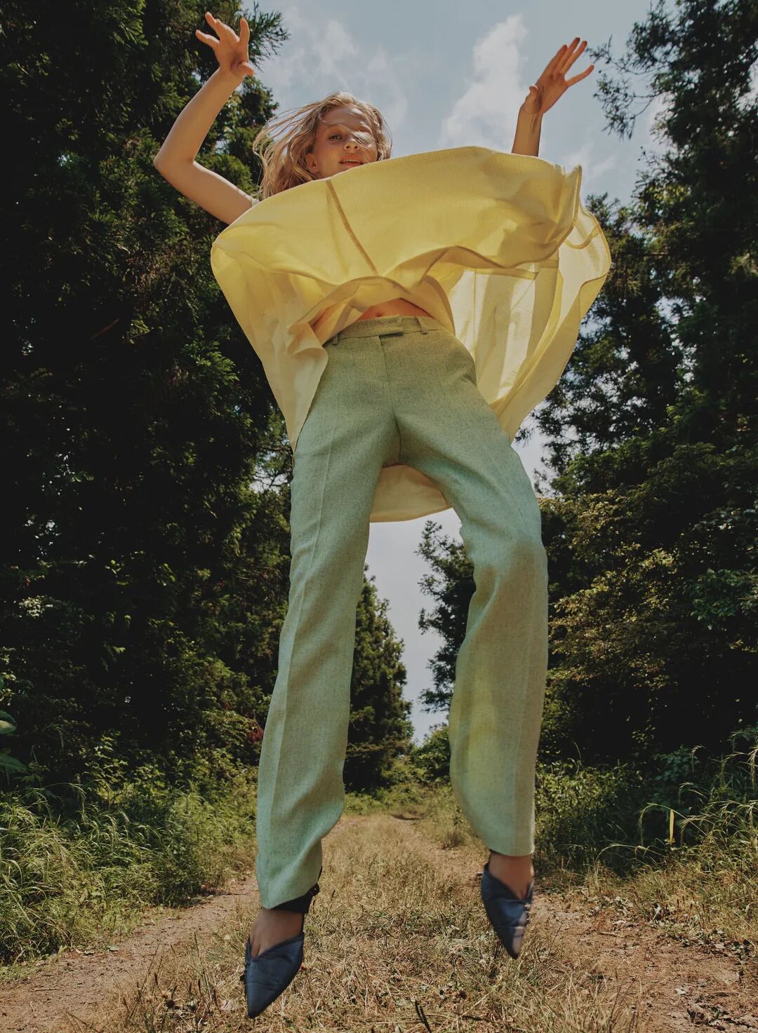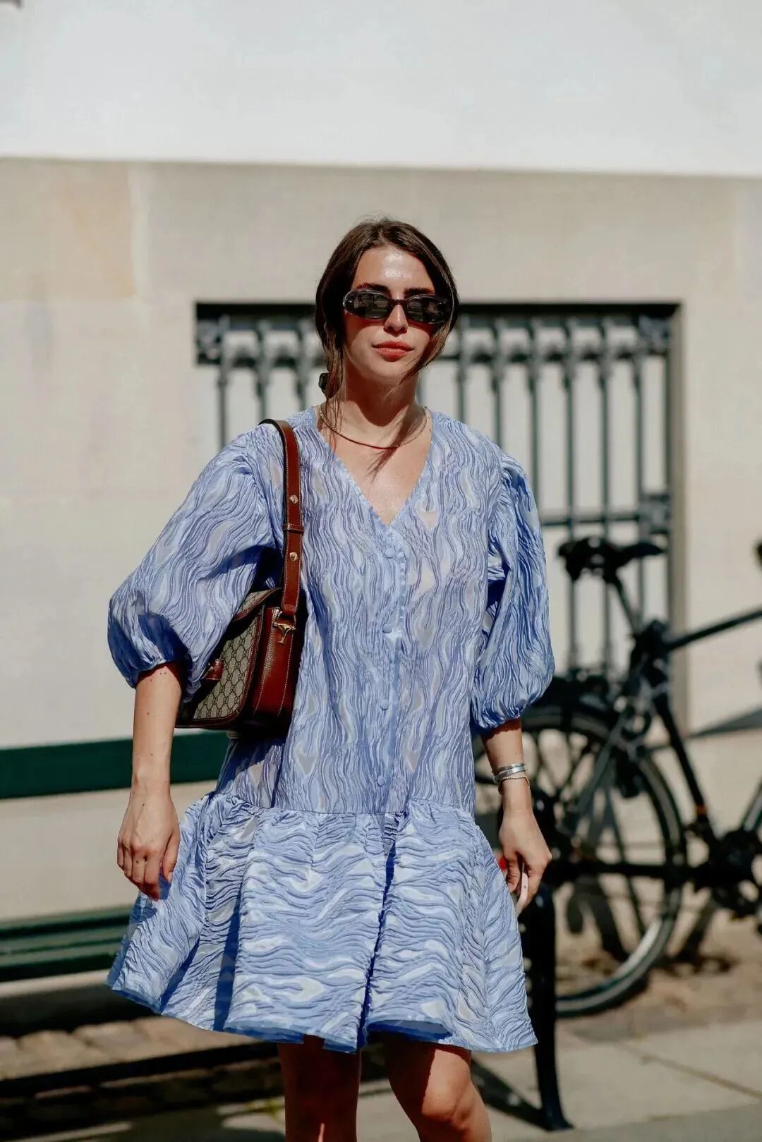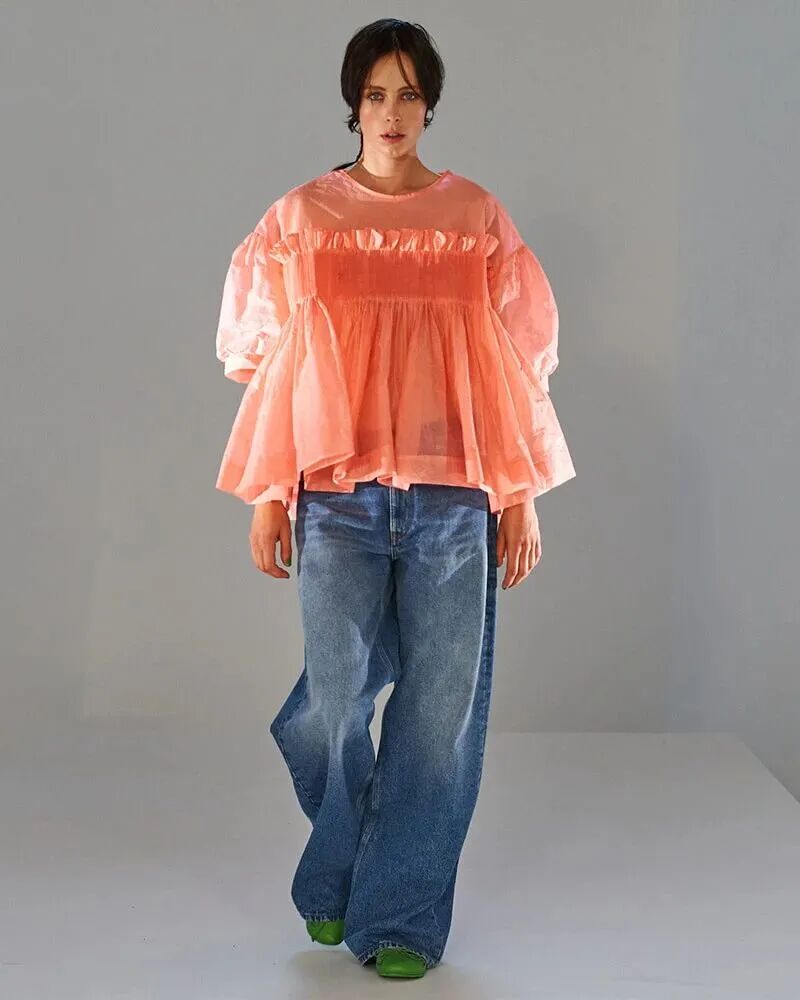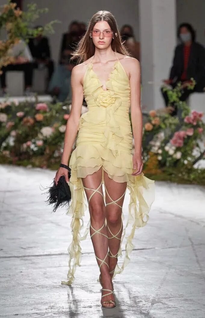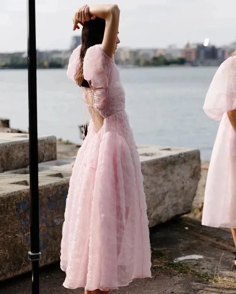 高腰设计、蓬松裙摆和泡泡袖设计,再加上甜美的色彩,活力十足