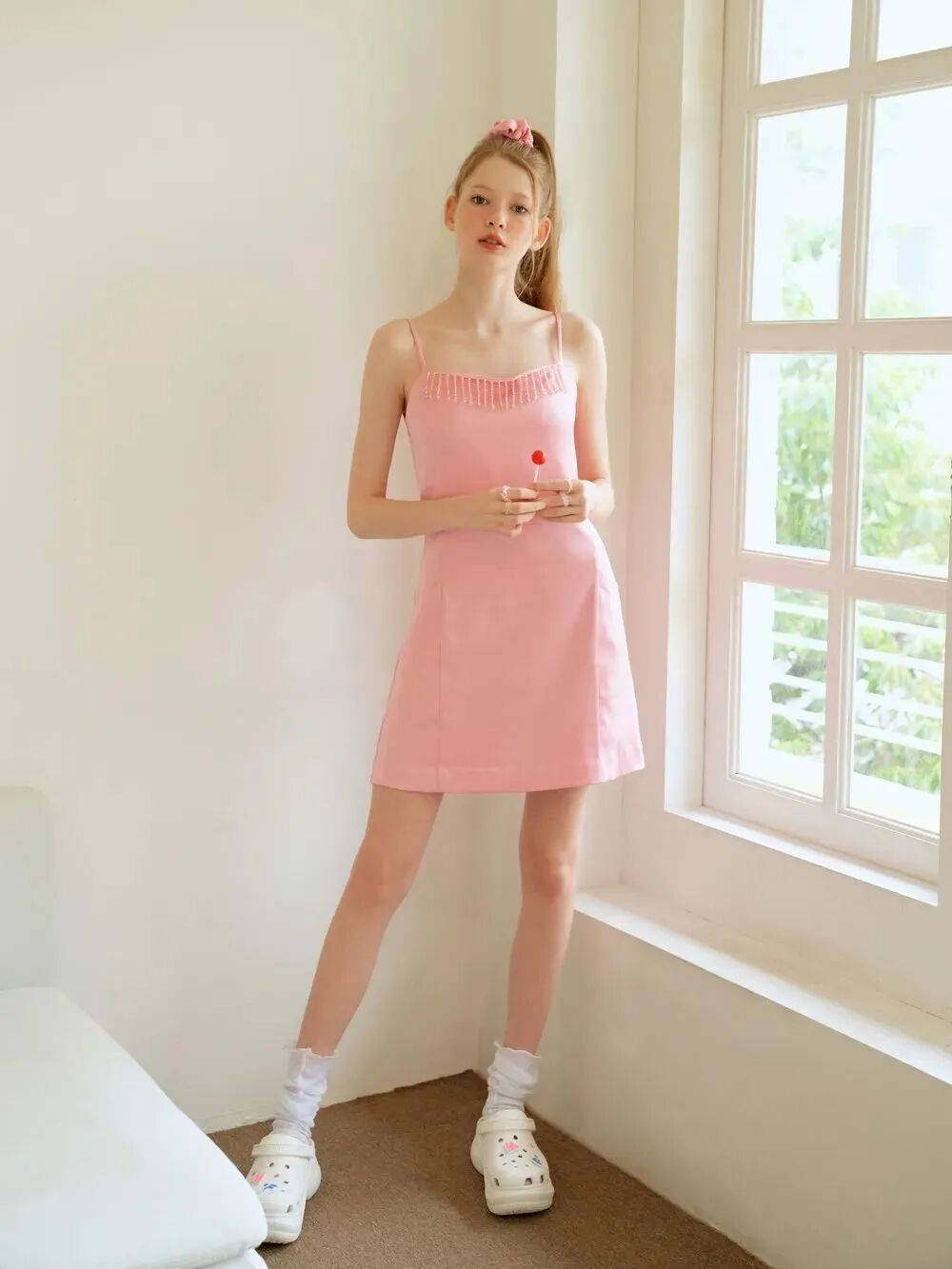 甜美吊带裙不仅可爱而且充满灵气,空气中都洋溢着满满的青春氛围感。