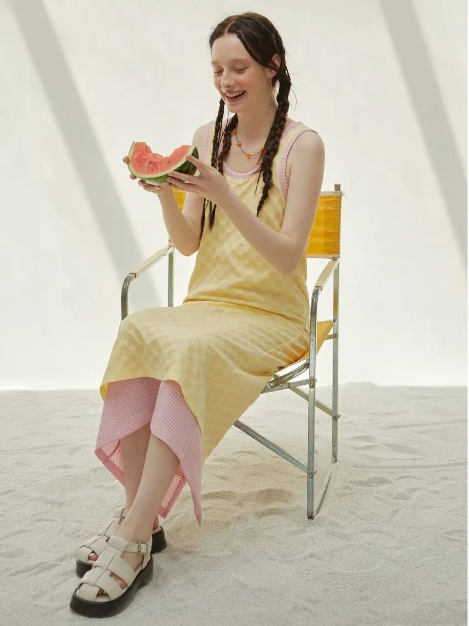 甜美的吊带裙+少女感编发+一个元气满满的妆容=夏天