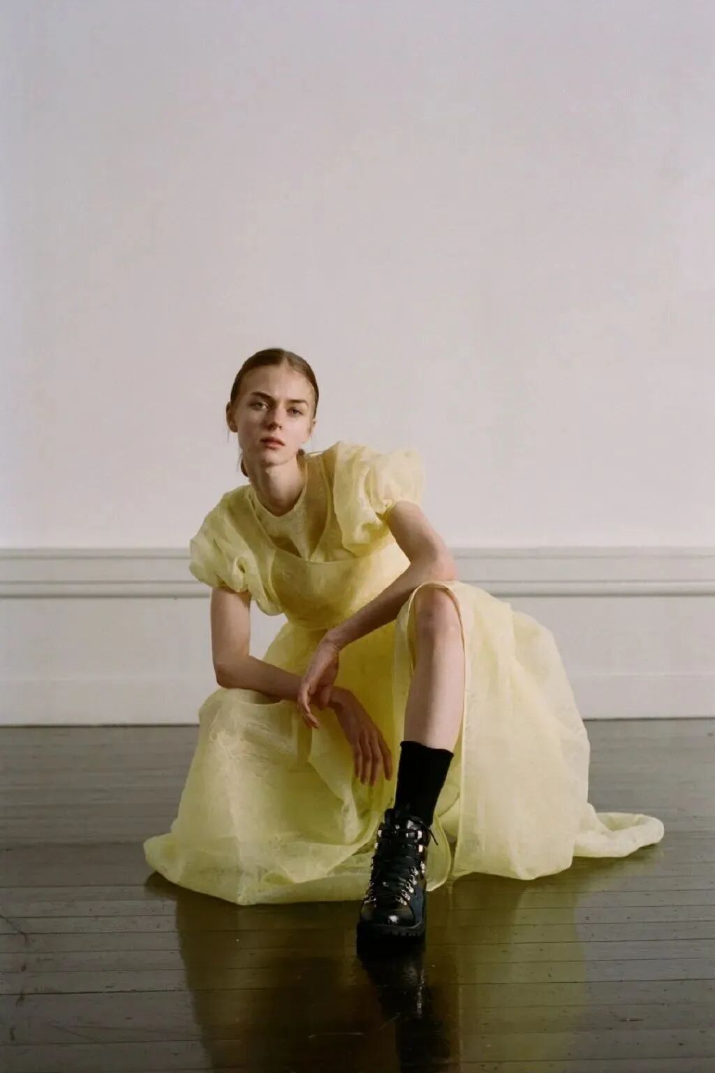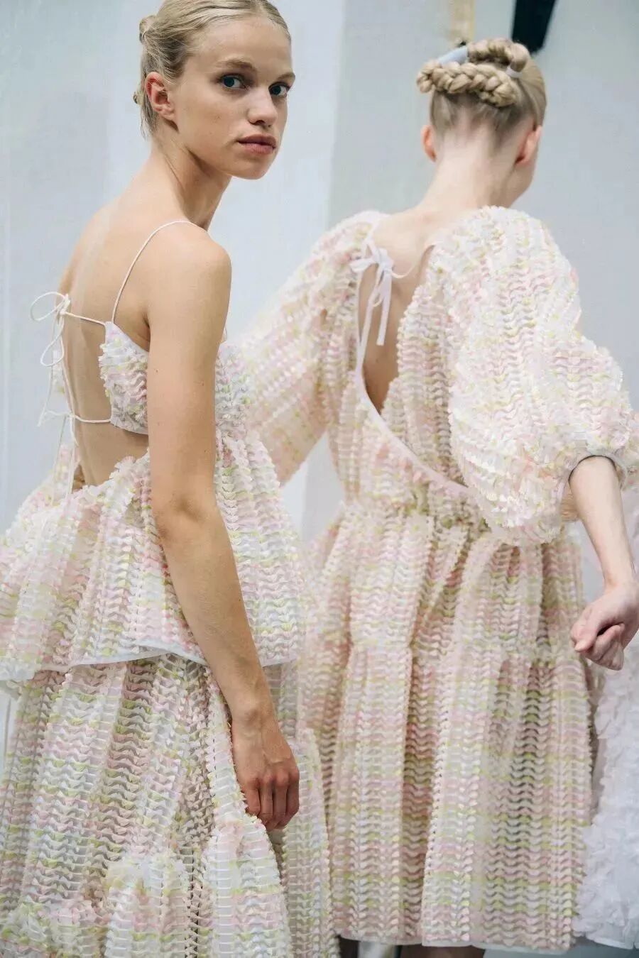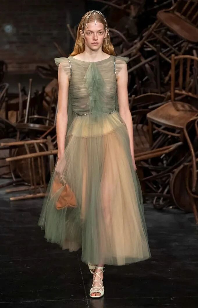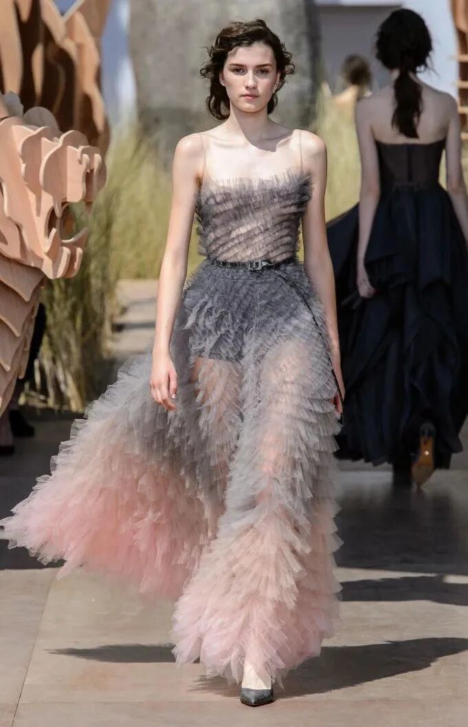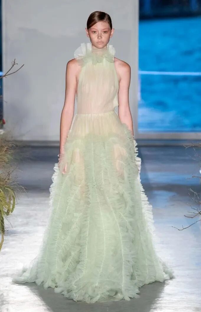 细细的带子和蓬松的量感裙摆能够形成反差。