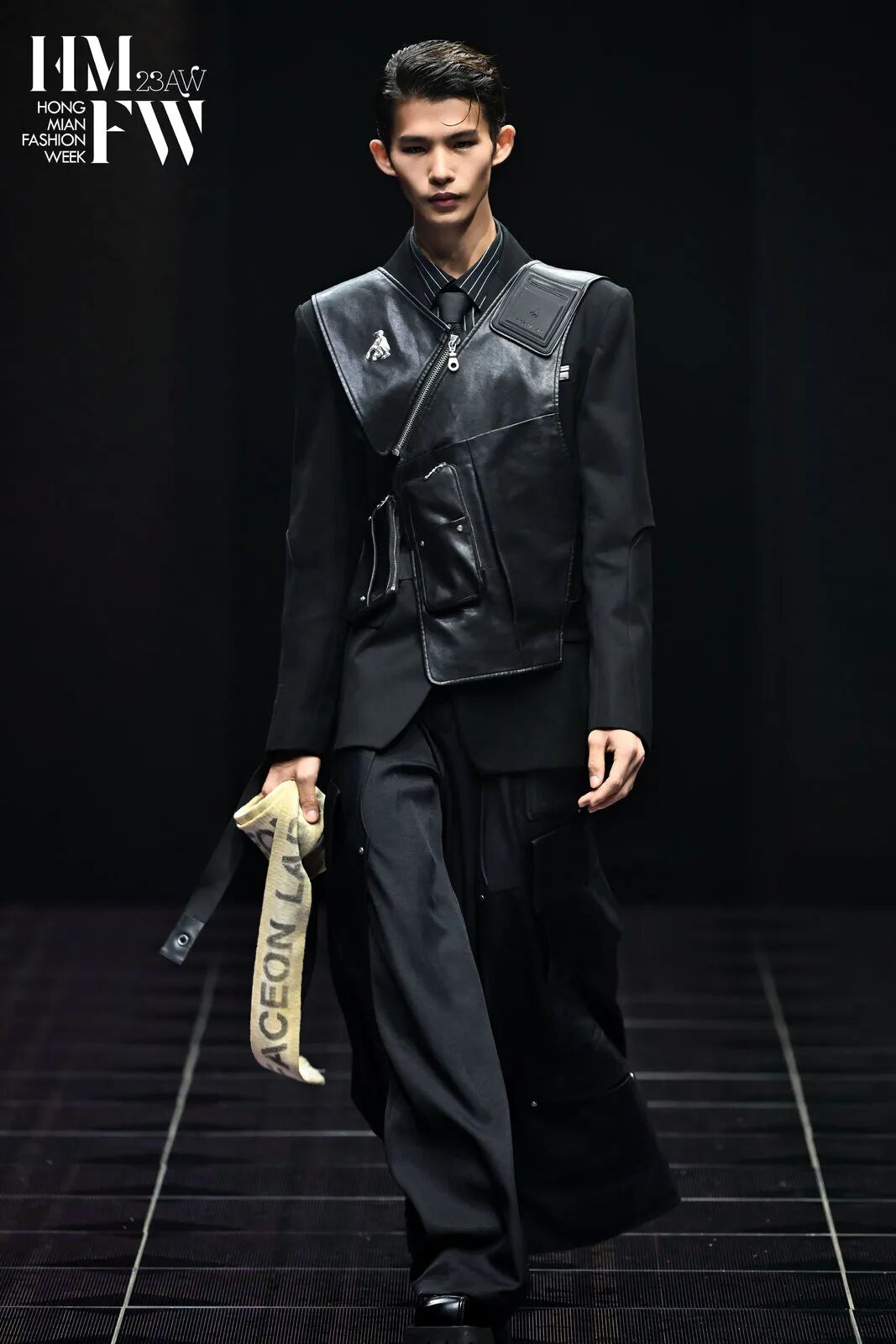 FACEON LAB品牌创始人、中国十佳设计师黄光辰,品牌合伙人、设计师郭鹤一直探寻新兴理念,本季发布主题为“INTERFACE”,以强烈的设计感、结构重组的设计手法及postpunk的艺术理念与金属材质相结合,将复杂的意识形态用简约美学的方式呈现,营造迷人反派、富有矛盾的形象,看似反传统的“离经叛道”蕴藏着对主流文化的全新定义。