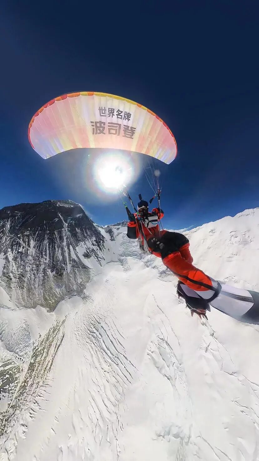 2023年5月18日,波司登珠峰登山队成功飞跃珠穆朗玛峰,开创了国人在珠峰飞行滑...