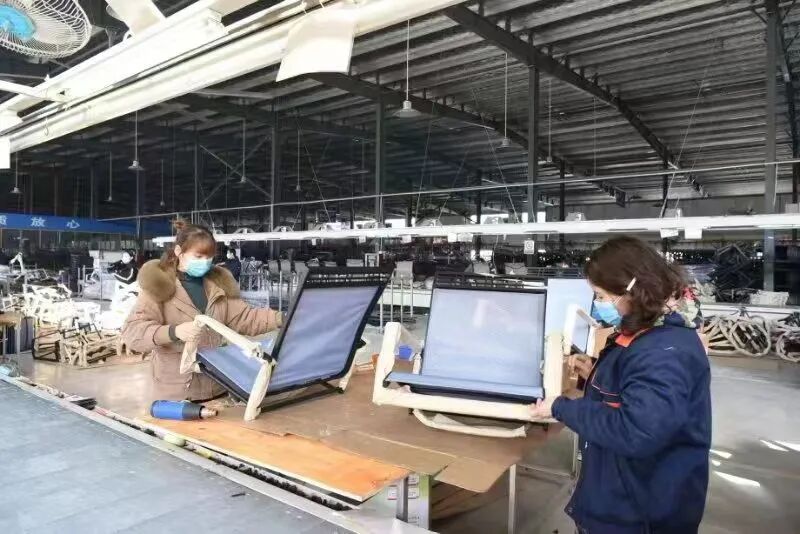 户外休闲产业园内,工人们正在加紧生产,赶制订单。徐佳瑞摄