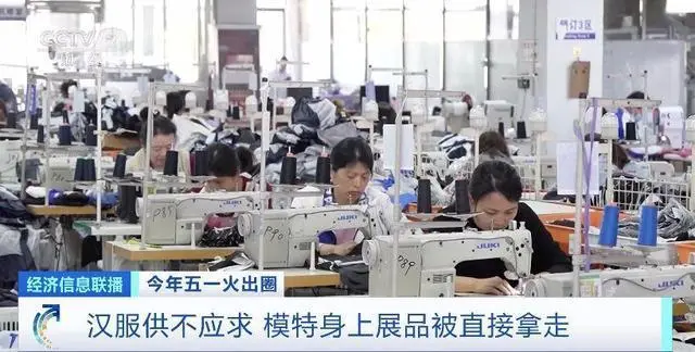 山东曹县某汉服工厂总经理孟晓霞表示,现在货品供不应求,有些客户线上根本等不及,直接来到曹县选购,甚至有的客户把模特上展示的产品直接拿走了。