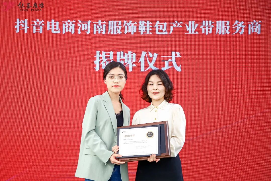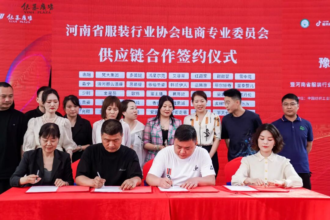 会议还进行了中国纺织服装电商直播基地揭牌仪式、抖音电商河南服饰鞋包产业带服务商揭牌仪式、河南服装电商人才孵化实训基地落成仪式和银基广场&供应链合作签约仪式。