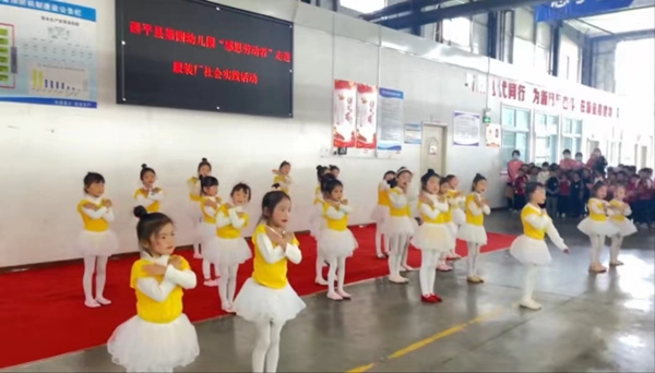 幼儿园的孩子们送给妈妈一个大大的拥抱,感恩父母的辛勤劳作,并送上幼儿园为妈妈们准备的精美礼品和好看的舞蹈。孩子们在参观的过程中被工人阿姨们各司其职又相互合作的场景所感动。