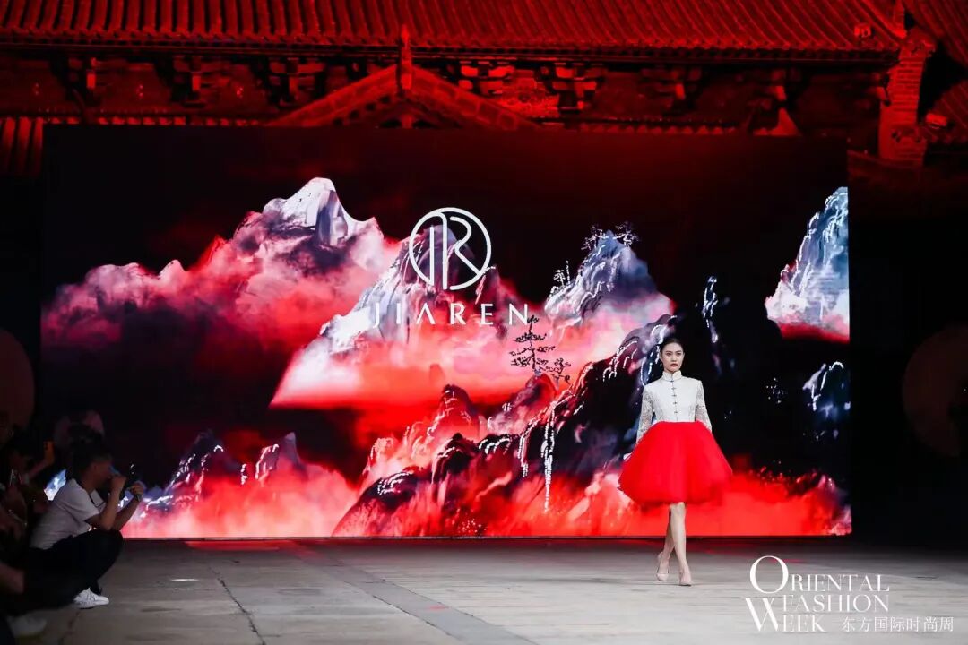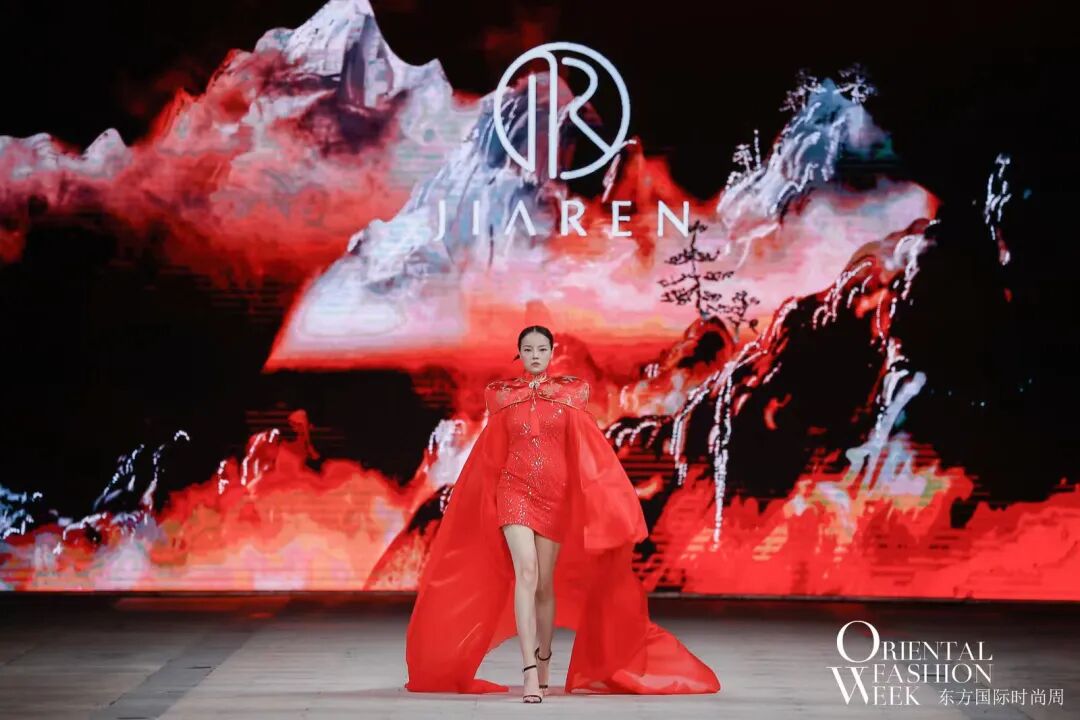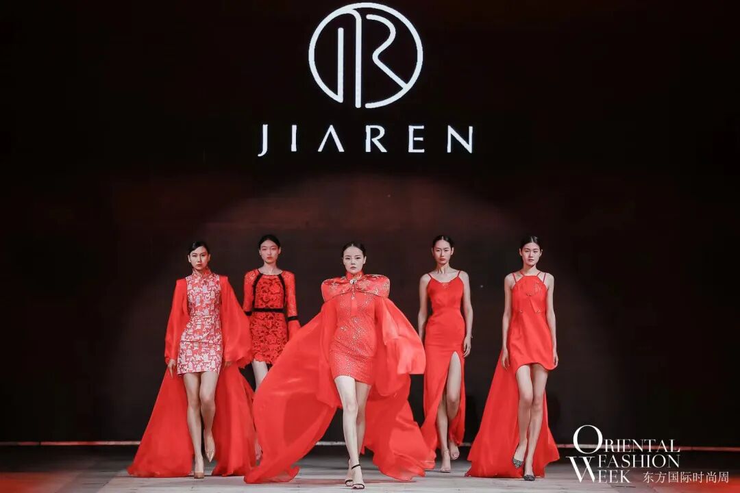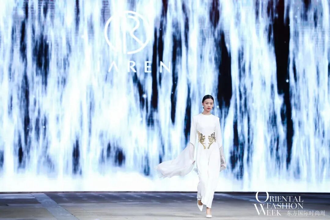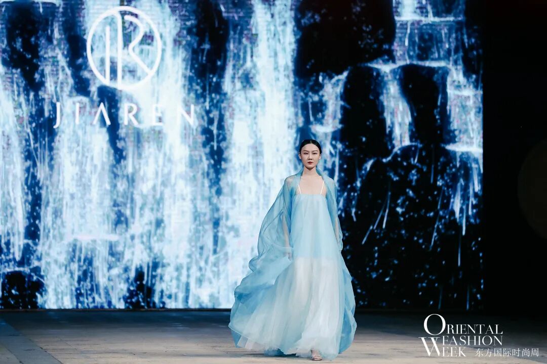 与会嘉宾与领导共同开启首届东方国际时尚周启动仪式后,开幕大秀——JIAREN品牌创始人兼设计总监蒋永萍“苍穹”系列正式拉开了帷幕,线上线下百万时尚达人同时在线观秀!
