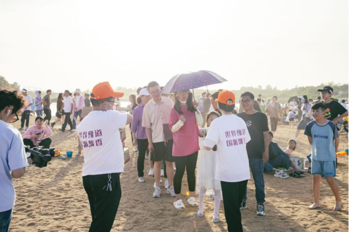 草坪上,游客自带烧烤架或卡式炉,五花肉滋滋作响,茶炉浇沸茶汤;天幕下人们三三两两畅谈;沙滩上儿童欢快嬉戏;摩托艇湖面炫技引来一阵阵喝彩、情侣在霓虹灯牌下比心留影……美好假日生活画卷在这里展开。