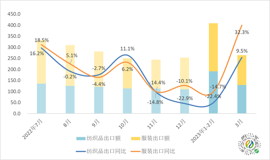 形势向好 | 3月全国纺织品服装出口恢复正增长