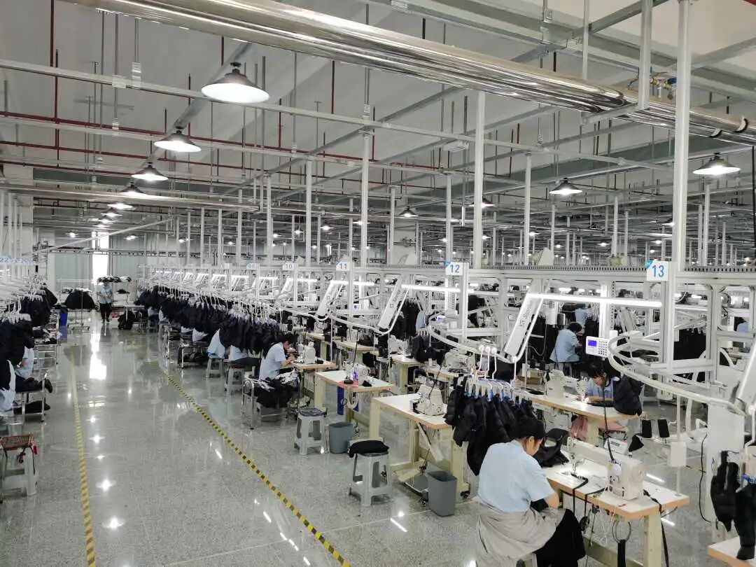 4月14日,走进河南省驻马店市西平县阿尔本服饰生产车间,此起彼伏的哒哒声萦绕耳畔,近千平米的生产车间中已经看不到搬运制衣布料和成品货物的工人,取而代之的是来回穿梭的背负式AGV智能机器人(自动引导运输车)、AGV叉车、ACR智能机器人(箱式仓储机器人)等智能化设备。
