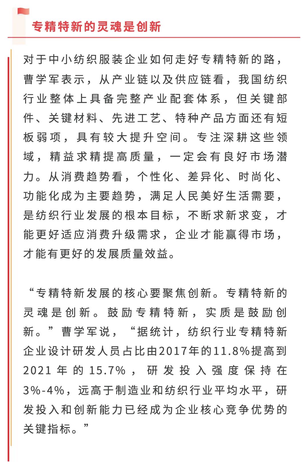 纺织服装行业发展“专精特新”大有可为