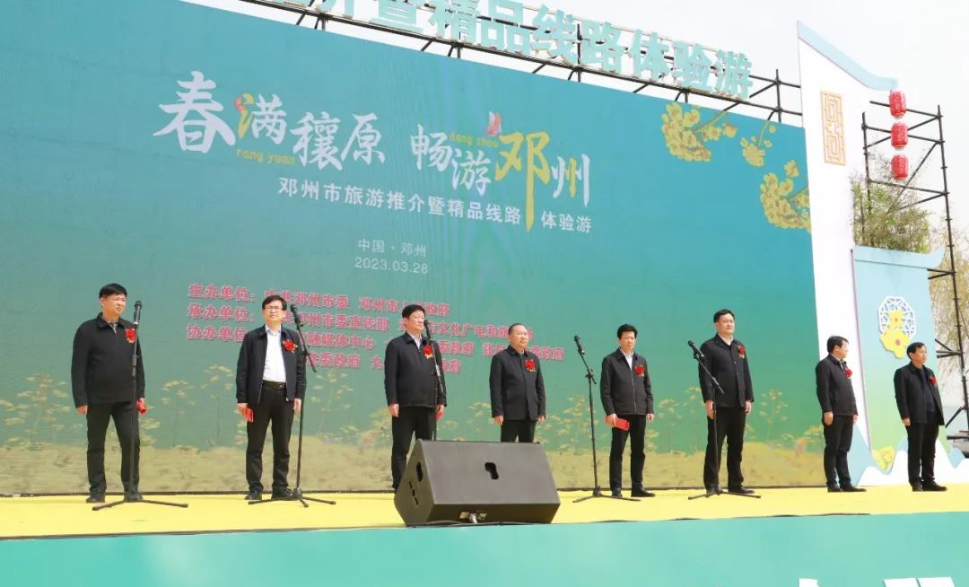 惠风和畅、万物复苏。3月28日,邓州市举行“春满穰原 畅游邓州”——邓州市旅游推介暨精品线路体验游活动开幕式。南阳市副市长周华锋,南阳市文化广电和旅游局党组书记、局长任永亮,南阳日报社党委委员、副总编辑罗非,邓州市委书记邓俊峰、市长黄登科等领导出席开幕式。