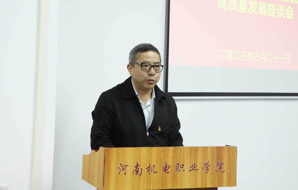河南机电职业学院副校长王庆海首先对倪阳生会长一行以及省内其他专家领导的到来表示欢迎,并着重讲述了对职业教育的理解以及河南机电职业学院所做的各种实践案例。