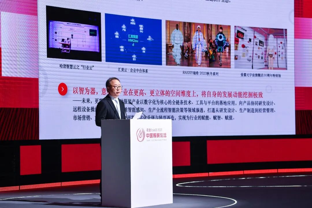 大变革蕴含大机遇,新时代孕育新未来。站在新旧动能转换、发展模式转型、消费需求转变的重要战略机遇期,我们要下真功夫做深做透、花大力气向上向善,用心造物、以质取胜、守正创新、奋勇向前。即,以工匠精神打磨产品,以专业主义确立不可替代的竞争优势;以战略定力坚守初心,以长期主义构建独具特色的品牌自我;以审美视角驱动创新,以未来主义彰显引领市场的价值主张。一方面,科技是第一生产力、人才是第一资源、创新是第一动力。中国纺织工业联合会已启动《建设纺织现代化产业体系行动纲要(2022-2035)》研究编制工作,锚定行业需求和关键创新方向,打好产业基础高级化、产业链现代化的攻坚战,推动创新链、产业链、资金链、人才链深度融合,实现科技高水平自立自强,打造具有全球影响力的产业科技创新中心,培育一批“专精特新”企业、单项冠军企业,从源头和底层解决关键技术问题,在前瞻布局、集智攻关中实现由跟跑并跑向并跑领跑转变。另一方面,行业正在加大数智技术和平台软件的研发投入,形成自主可控的全产业链软件生态。从个性化定制、智能化生产到网络化协同、服务型制造,从NFT、元宇宙到Web 3.0、DAO(去中心化自治组织),从AR试穿、3D打印到数字共创、ChatGPT在应用层面的普及化,服装产业不断形成自身与数字经济耦合驱动的新型发展模式,不断挖掘新场景、新业态、新玩法,实现产业链和产品链的高效化、高端化和服务化。以人工智能为例,AI正在引发从“效率性工具”到“生产力工具”的根本性变革,实现由“决策式AI”向“生成式AI”的范式跃迁,探索AIGC与3D设计、数字人、元宇宙等数字时尚前沿的深度融合,在数字空间与消费者进行场景化体验交互、建立沉浸式情感连接,推动中国服装行业向真正的智能化跃升。如:汉帛推出“哈勃智慧云”工业互联网平台,以智能制造为核心引擎,搭建服装行业云以及智能制造云,助力中小企业转型升级;汇美时尚打造汇美云企业中台体系,基于数字化系统实现精益运营,达成智能研发、智能制造、智慧物流、智慧零售的高效协同;RAXXY瑞希2023秋冬系列,打破传统时装以2D平面布料为基础的系统构架,探索AI演算设计法“序列式时装”,首登2023秋冬米兰时装周;爱慕在元宇宙旗舰店原有的空间场景和互动体验的基础上,上线爱慕30周年特别版,将爱慕博物馆内衣文化展1:1复刻至元宇宙旗舰店。以智为器,意味着产业在更高、更立体的空间维度上,将自身的发展动能挖掘极致——未来,更需要我们推动服装产业以数字化为核心的全链条技术、工具与平台的落地应用,向产品协同研发设计、远程设备操纵、工业现场多维智能感知、生产全流程智能决策等领域渗透,打通从研发设计、生产制造到经营管理、市场营销、文化推广的全生命周期数字化升级与转型再造,实现为行业的赋能、赋智、赋值。一方面,服装产业正在迎来将文化自信转变为品牌自信、产品自信最好的时代机遇。步入“第四消费时代”,追求理性简约、注重精神体验、具有本土倾向的消费意识正在生长。露营骑行、冲浪攀岩、穿搭烹饪、围炉煮茶、逛买手店等成为生活方式的“新顶流”。在传统风格与在地文化兴起的大势下,“本土企业正在赢得市场”。麦肯锡发布的《2023中国消费者报告:韧性时代》报告指出,中国消费者对本土品牌的偏爱有加速增长之势。另一方面,中国服装品牌以不断精进的技艺传承、美学主张、内容生产,在宏大的全球叙事中逐步构筑了具有本土特色、风格多元、时代影响的产业体系。越来越多的中国服装品牌把创意设计扩展到更大尺度,通过内容叙事、社群营销、跨界破圈,深入抵达社会公共意识的文化地层进行演绎和再创作,从美术馆、博物馆、地标商圈到山川湖海,从民艺再生、艺术疗愈、在地创作到户外运动,从策展、办市集、创建播客到纪录片创作,以不断输出的高价值内容,不断强化与凝聚消费者的本土意识与文化认同。如:Ms MIN在社交媒体平台上陆续上线纪录片《衣归》,讲述关于服装设计制作、集体共创、生命成长的故事;例外携手隋唐洛阳城应天门遗址博物馆、北京汉声文化创意有限公司、当代艺术家郭伟光,策划了以“接福纳瑞”为主题的门神四方联展;Le Fame推出「Le Fame Upcycled再造档案馆」项目,展示了品牌的发展史与近代中国时尚、中国女性的成长史。以文固本,意味着产业在更深、更丰富的价值维度上,将自身的美学素养修炼极致——未来,更需要我们建立文化表达的主动性和本土设计的自信心,将情感价值、美学价值和体验价值转化为产品价值与品牌价值,不忘本来、吸收外来、面向未来,夯实传统文化根基、建立当代美学体系、讲好中国品牌故事,弘扬天工开物、天人合一、日用即道等传统造物哲学和中华文化精神,改变营销传播层面的元素堆砌和符号滥用,回归品牌内核层面的价值深耕与意境新生,实现传统与当代、创意与生意、美学与生活的交相辉映。一方面,可持续时尚正在成为绿色生活提案者。面对环境污染、全球变暖、极端气候、资源枯竭等不断加剧的“人类世”危机,“循环时尚”、“新式旧时髦”、“健康穿着”、“纯粹主义”等消费理念开始兴起,“环境保护”、“有机材料”、“生物多样性”、“延长产品全生命周期”等可持续名词也被不断提及,消