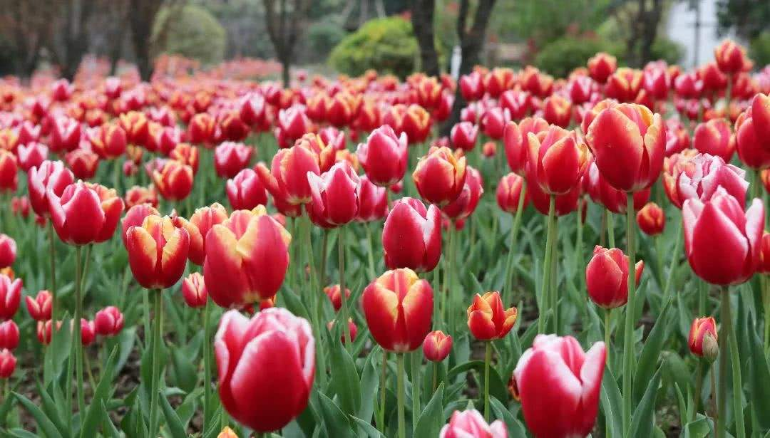 今年,新野县白河滩湿地公园郁金香种植面积近五万余平方米,品种及栽种株数达100余种,百万余株。