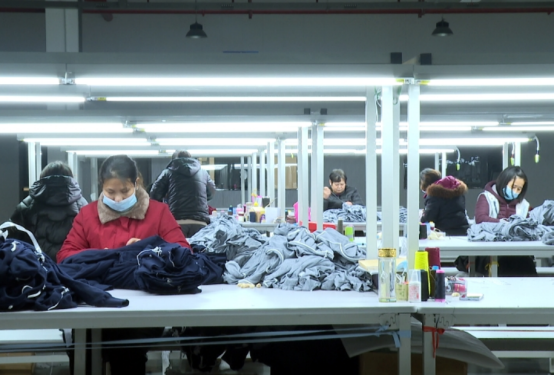 3月6日,在信阳市息县天创服饰有限公司“巧媳妇”创业就业工程示范基地里,“巧媳妇”们在流水生产线上有条不紊地制作衣服。经过缝盘工一圈圈不断的穿眼、刮边、拼接,一件件成品新衣逐渐成型。