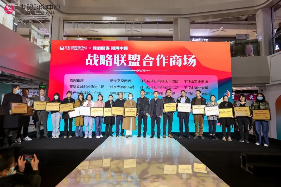 豫派服饰在郑州世贸的蓬勃发展,也离不开河南各个地市商场的大力支持与推动。活动现场,郑州世贸购物中心为20余家地市联盟商场颁发“战略联盟合作商场”奖牌,未来将联合更多地市联盟商场,进一步拓展豫派服饰发展空间。