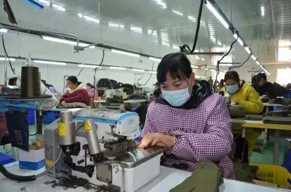 今年48岁的雷素英的丈夫常年在外打工,家中的3个孩子和5亩多地全靠她一个人张罗。2017年,驰骋制衣有限公司落户村里。为了多挣钱,雷素英成了公司的员工。“只要工作时长能达到,我可以自由支配上下班时间,接送孩子、农忙干活都不耽误,一个月还有400元的全勤奖,你说这活多难得。”她说。