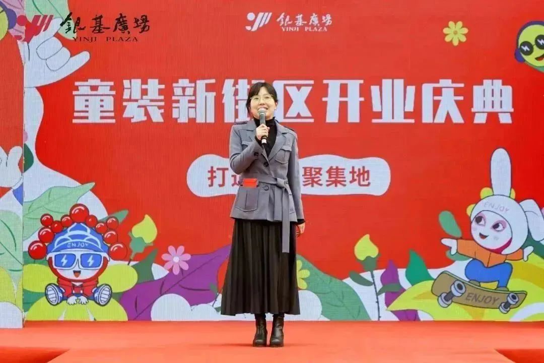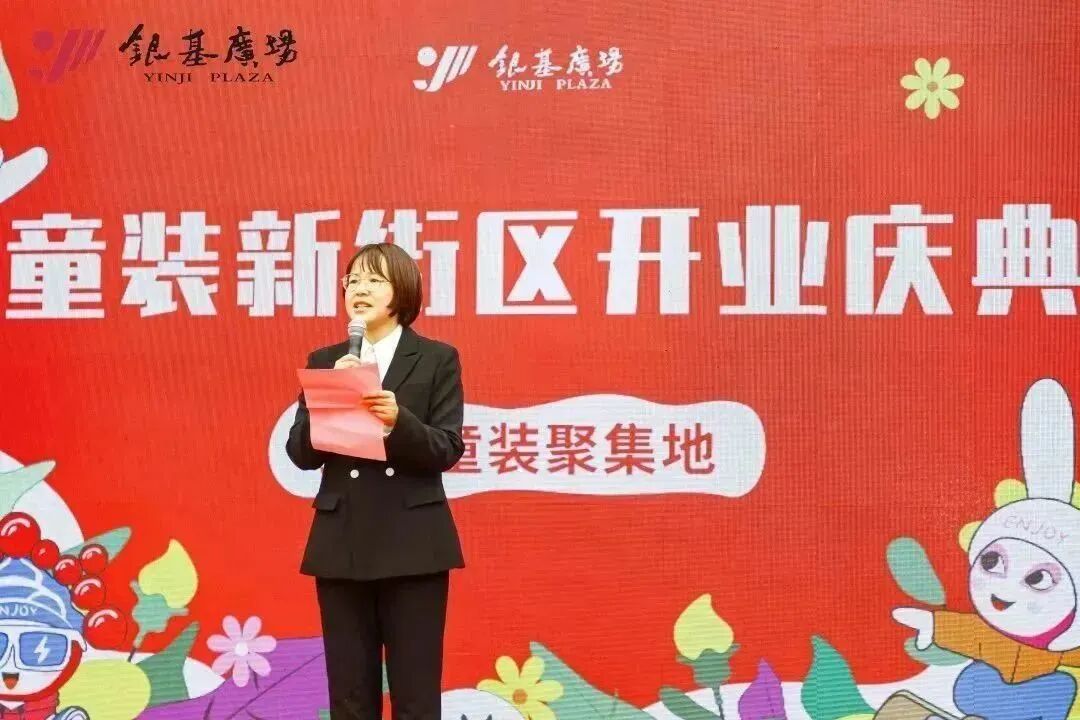 银基实业集团银基广场副总经理张馨方在致辞中对各位来宾的到来表示衷心的感谢!她表示,童装新街区是银基很重要的板块,新街区的开业标志着银基对童装区域的发展和坚定决心和创新之举,向社会公众充分展示银基童装的实力。