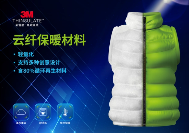 在全球持续倡导绿色环保理念与循环经济的当下,科技创新是绿色低碳发展的关键变量,全球性多元化科技企业3M致力于推动全球的绿能创新与永续发展,以实际行动积极践行和推广绿色生活方式,秉持「科技改善生活」的理念,重磅推出了一款新型Featherless保暖材料--3M新雪丽云纤保暖材料,呈现了3M的最新创新成果,以科技力量助力循环经济发展。
