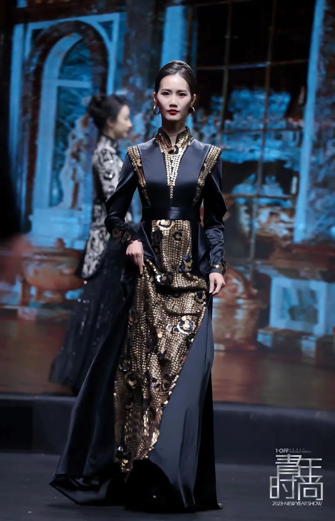 国际著名服装设计师、中国服装设计师最高奖“金顶奖”获得者、意大利米兰最高奖“金顶奖”获得者计文波携JWENBO高级成衣秀亮相此次开年大秀。百名模特佳丽进行了“新世代模特大赛河南总决赛”冠亚季军的激烈争夺。