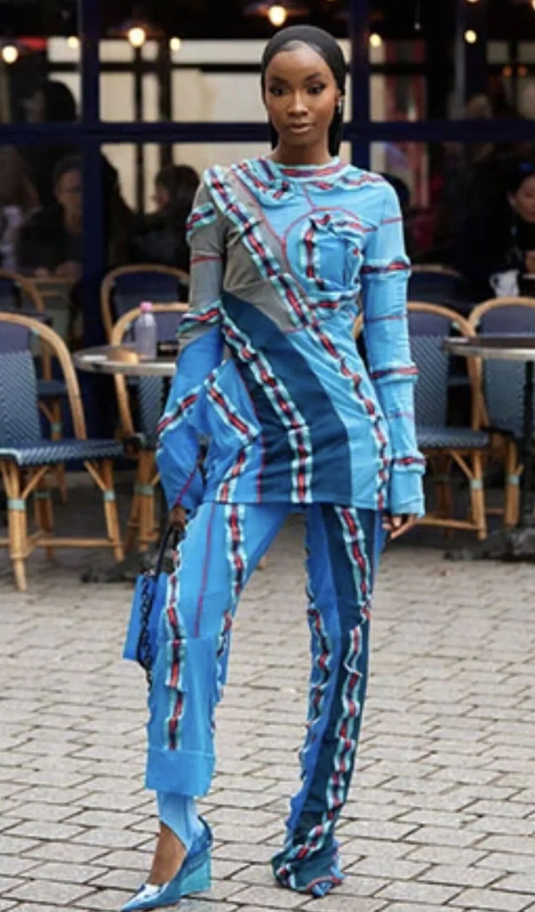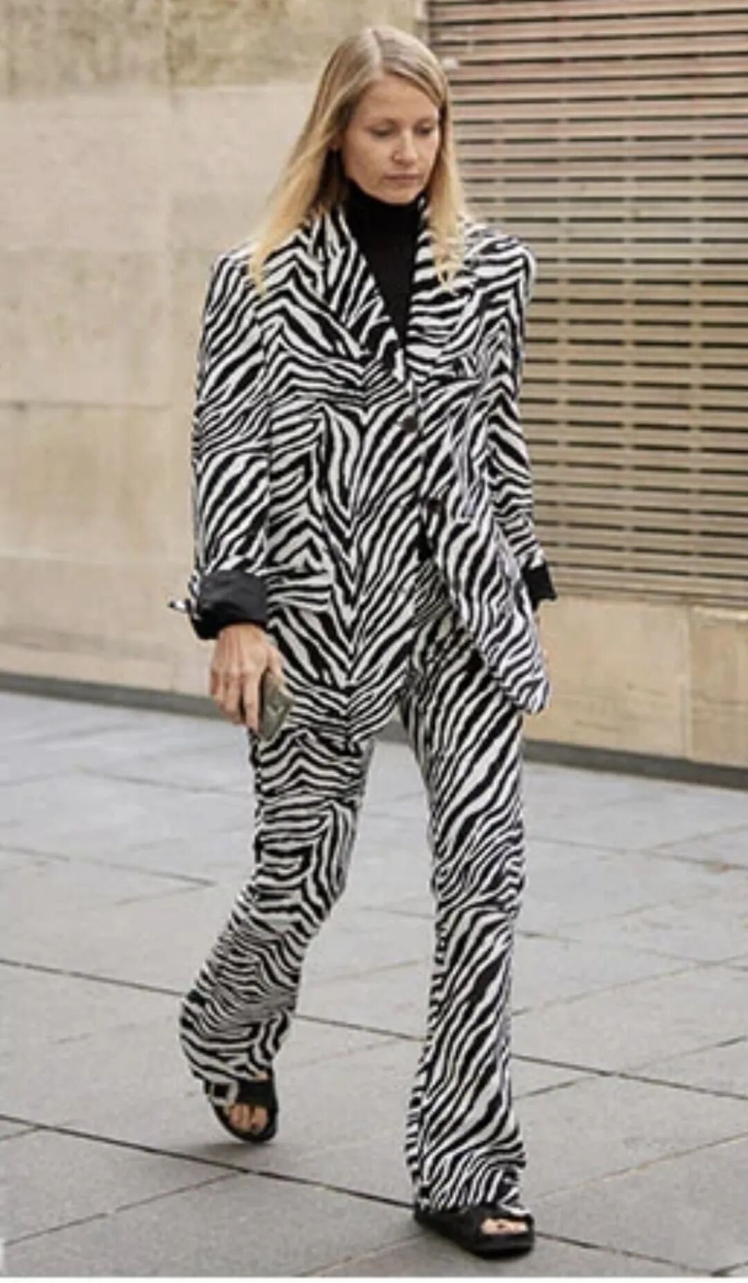 没有什么比匹配的印花设计更好的了,几何设计,大顽童系列,写实图案,抽象图案,超现实主义花卉,动物魅力以及经典兽纹等,它们不仅超级可爱,而且几乎在任何地方都很容易穿。而不需要找到一个互补色,你可以毫不费力地摇滚这个外观。试试条纹西装,夹克,迷你裙,或者长腰外衣和同样的裤子。这些服装的特别之处在于它给你身体的流线型效果——你可以拉长你的四肢,并立即发展出一个时髦的轮廓。用互补色调的配饰来摇滚,比如袜子、鞋子或包,或者扔一些完全相反的东西。此外,如果你愿意,你可以与其他风格混合和搭配。