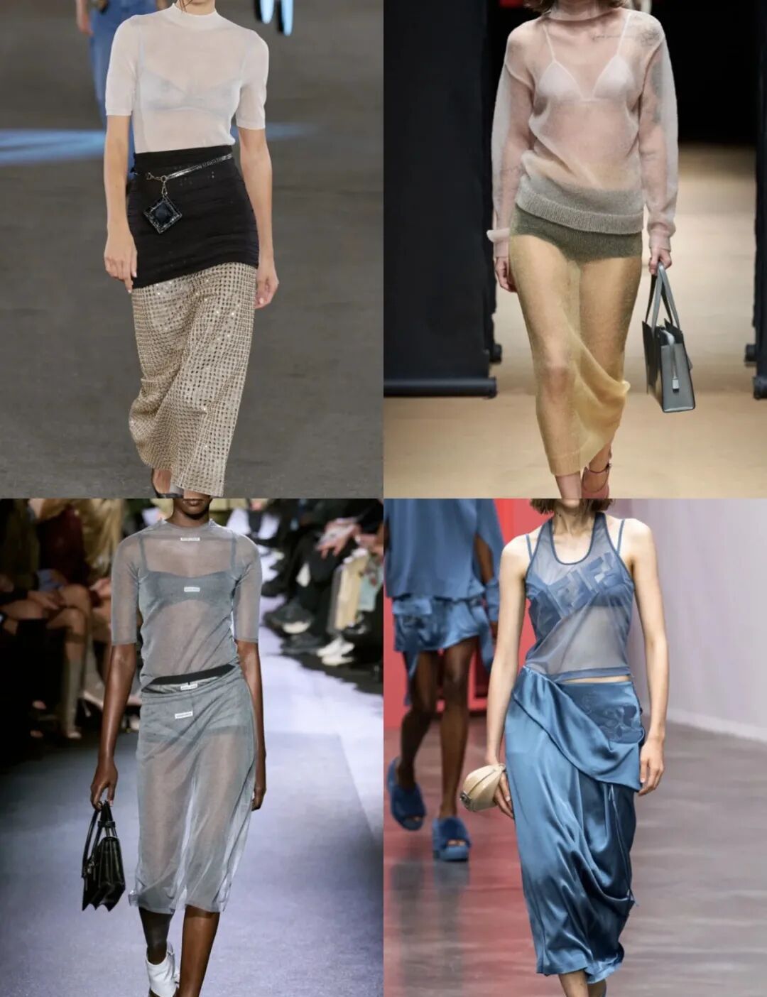 受迪奥和普拉达的启发,透明的裙子在本季又回来了。你可以从很多方面来塑造这种趋势,无论是受到1947年的新外观的影响,还是一种注入垃圾摇滚的美学。将这些透明的设计与纯白色单线图案搭配,打造轻松的90年代风格,再穿上轰炸机夹克,打造格外酷的感觉。或者,你也可以穿着紧身胸衣和a字字短裙,搭配少量的珠宝和精致的高跟鞋。利用纹理打造多方面的外观-这是对经典面料的全新诠释。