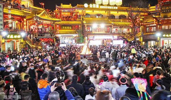 2023年2月1日晚,陕西咸阳,人们在福园巷子娱乐。图/视觉中国