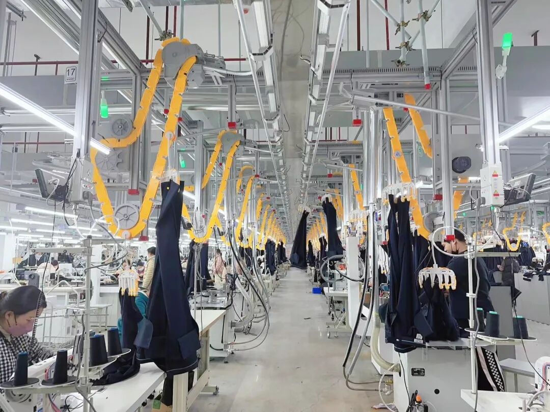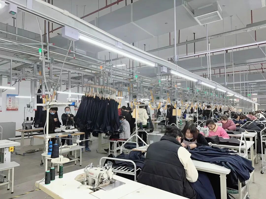 走进淮滨临港国际服装城阳光(河南)生产车间,车间内一片繁忙景象,生产线火力全开,...