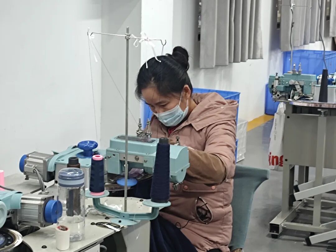 因为家庭原因,我出不去的务工,最后经过村里宣传息县办的巧媳妇培训班学那个毛衫缝制缝盘技术,然后就在那里面学习,很快就能熟练上手了,现在在天创工作,待遇也挺好的还能挣钱补贴家用,还能带孩子。