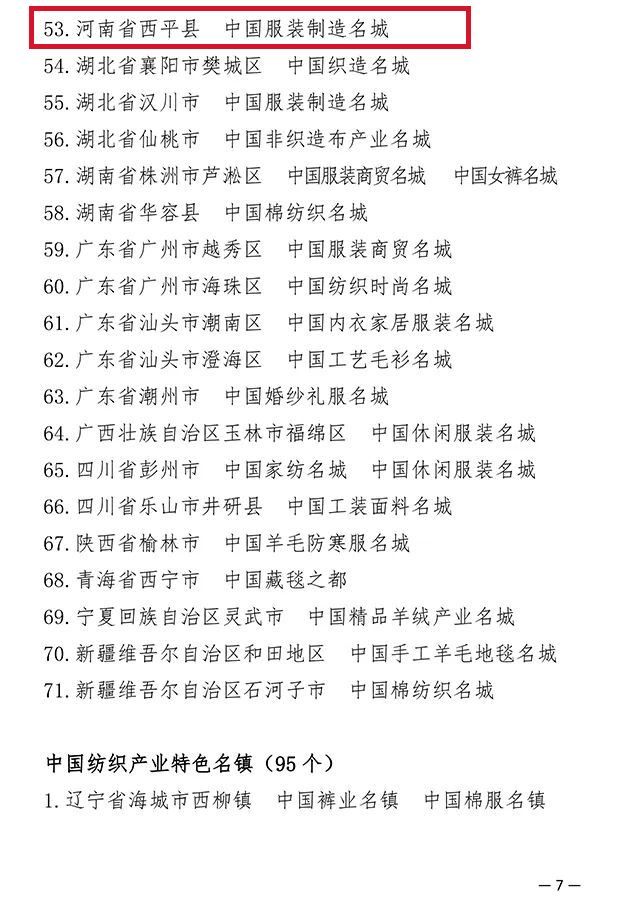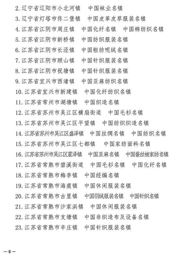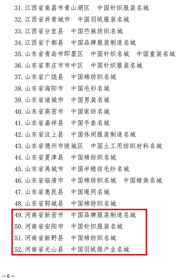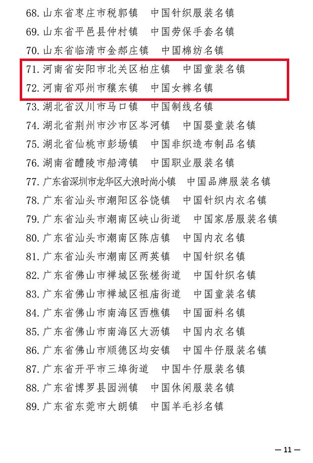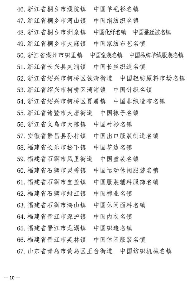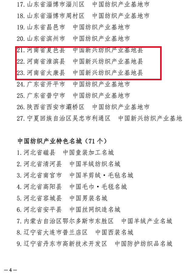 193个纺织产业集群试点地区公布,河南省夏邑县等10个地区上榜!