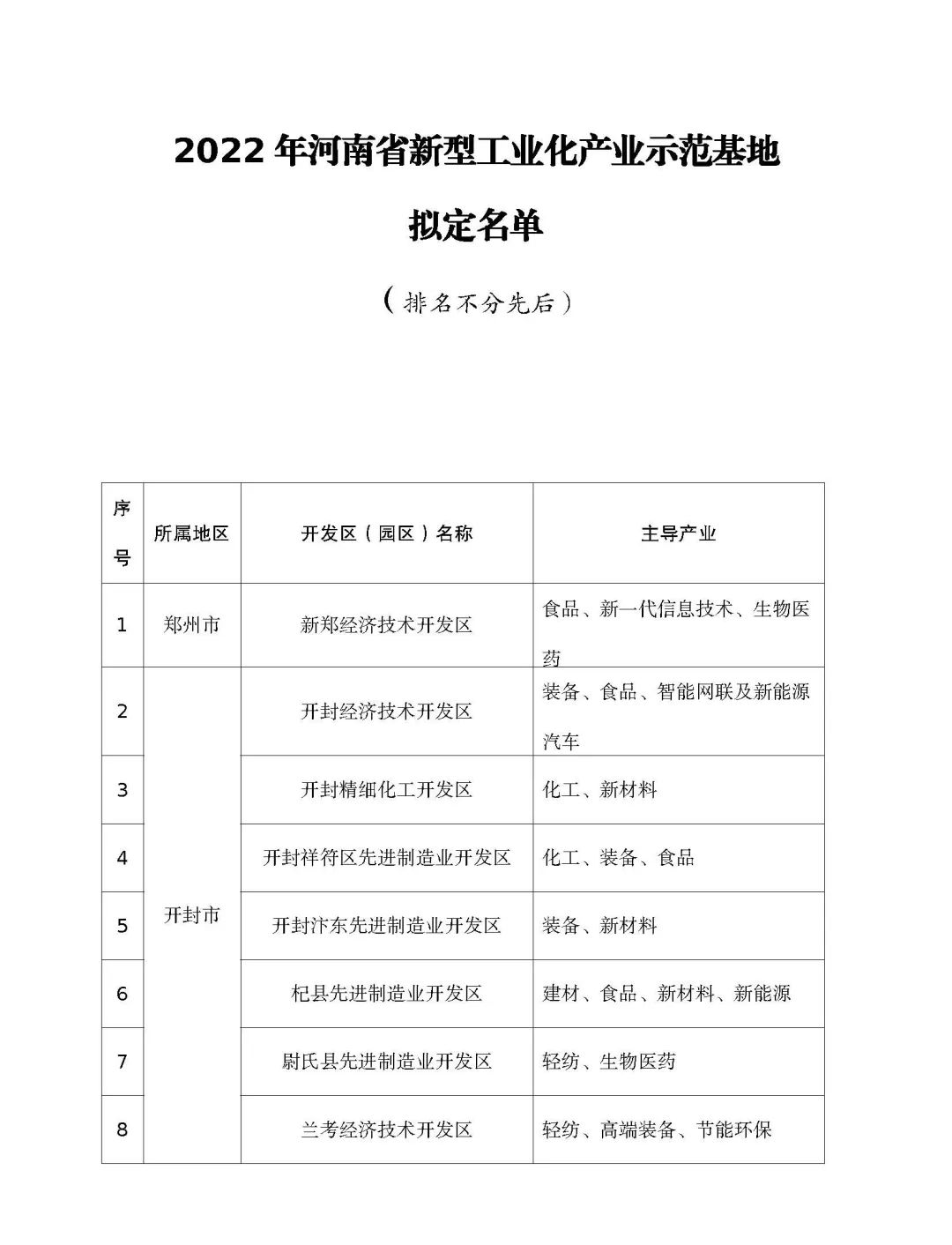 2022年河南省新型工业化产业示范基地拟定名单公示 根据《河南省工业和信息化厅...