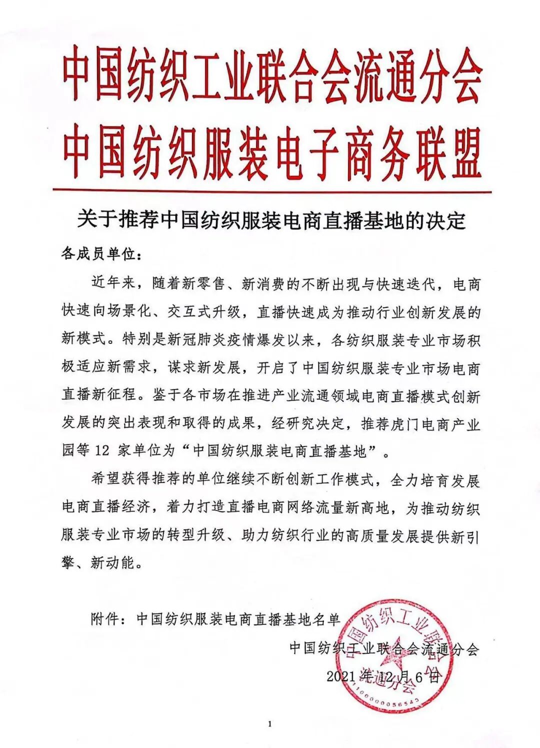 喜报 | 郑州银基广场荣获“中国纺织服装电商直播基地”称号!