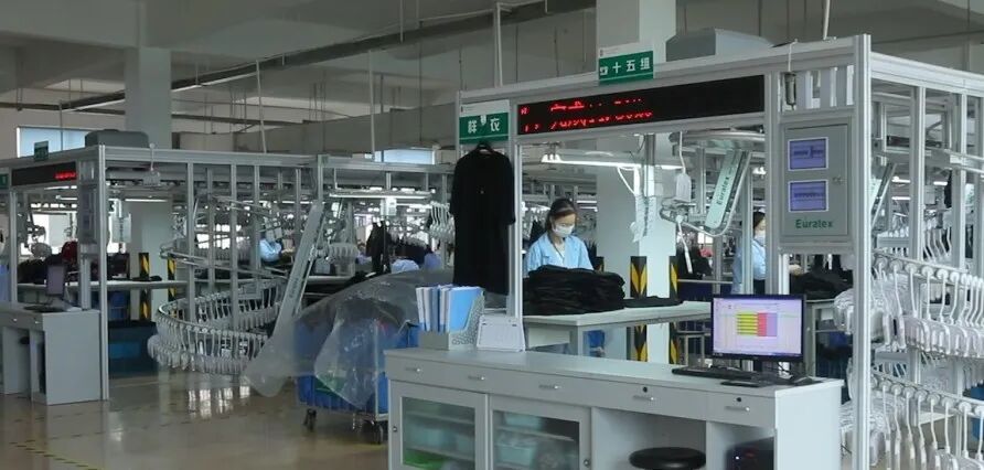 公司配备全吊挂缝制线、传送线、智能仓储等智能制造服装设备、生活区配备标准化食堂、公寓式宿舍、员工文化娱乐活动中心等。