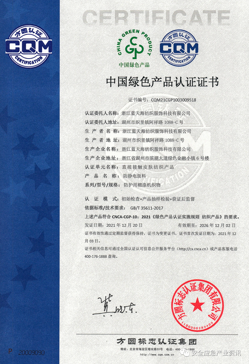 产业工人的生命安全关系着亿万家庭的幸福,生产合格产品,坚守产业工人生命安全最后一道红线是我们安防产品相关企业的底线,蓝天海将不遗余力,继续专注于“蓝翔”多功能防静电工装防护面料研究与推广工作,践行“把安全、健康、舒适、智能献给勤劳智慧的产业工人”这一企业使命。