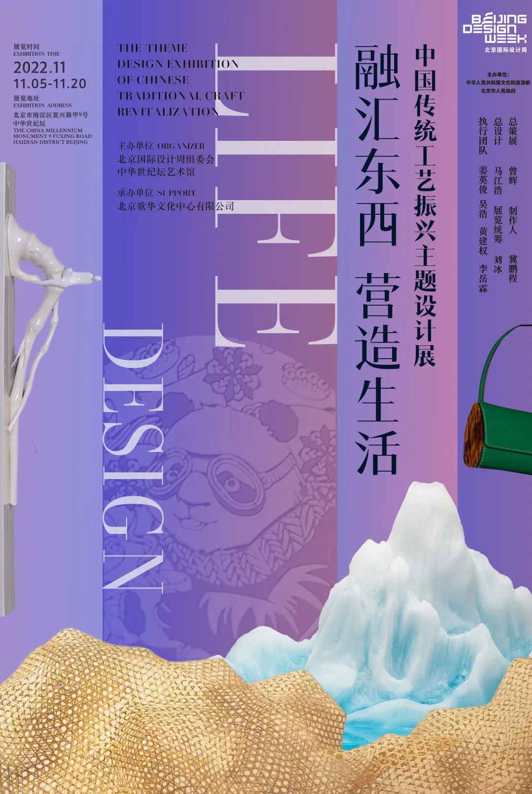 11月5日,2022北京国际设计周第5届中国传统工艺振兴主题展在北京中华世纪坛举行,本次展览为期16天,将尝试首发通过当代设计孕育出的传统工艺品牌,后期将这些品牌通过商业路径走向商业市场。本次展览邀请来自全国各地的品牌30多个,涵盖陶瓷、金工、竹艺、服装各个领域。