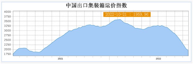 近期,国际海运价格下滑明显加速,中国出口集装箱运价综合指数(10月21日)为1959.96,比2022年1月的最高均值下降44%。这一方面反映了持续近两年的国际供应链瓶颈基本得到缓解,国际货运正在回归疫情前平衡状态,也直接体现出货物出口量下行趋势明显,对运力需求明显降低。