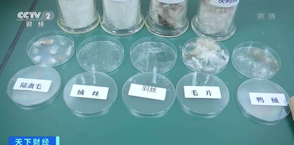 江苏南京市产品质量监督检验院高级工程师 朱小芳:绒子呈蒲公英小伞的形状,比较蓬松,绒丝的形状是一根一根的,没有蓬松感。老国标中“含绒量”里面既有绒子还有绒丝,起保暖作用的是绒子。新国标实施后,只标注羽绒里面绒子含量。
