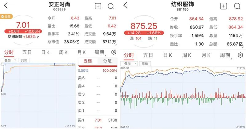 中国服装协会近日发布的最新数据显示,在一系列“稳增长”政策的支持下,我国服装内销市场逐渐回暖,投资保持增长势头。记者了解到,工业和信息化部即将举行2022纺织服装“优供给 促升级”活动,“重点培育纺织服装百家品牌名单(2022版)”也正在甄选过程中。14日,受相关消息影响,安正时尚涨停,美邦服饰、泰慕士、棒杰股份、万里马、梦洁股份、如意集团、万事利、报喜鸟等拉升跟涨。(来源:上海证券报)
