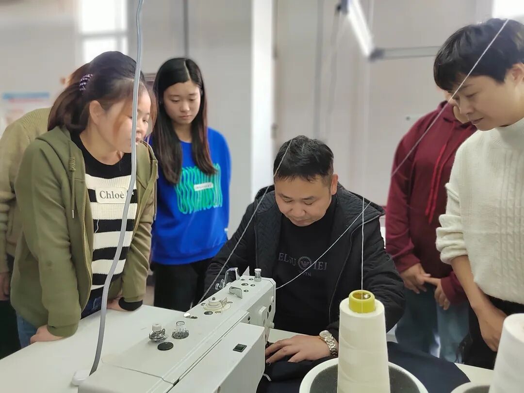 李刚会长一行与巧媳妇们进行了交流,询问她们的学习进度、工资待遇、生活状况等,鼓励她们努力学习,刻苦钻研,增强团队协作能力,技术越来越好,工资越拿越高。