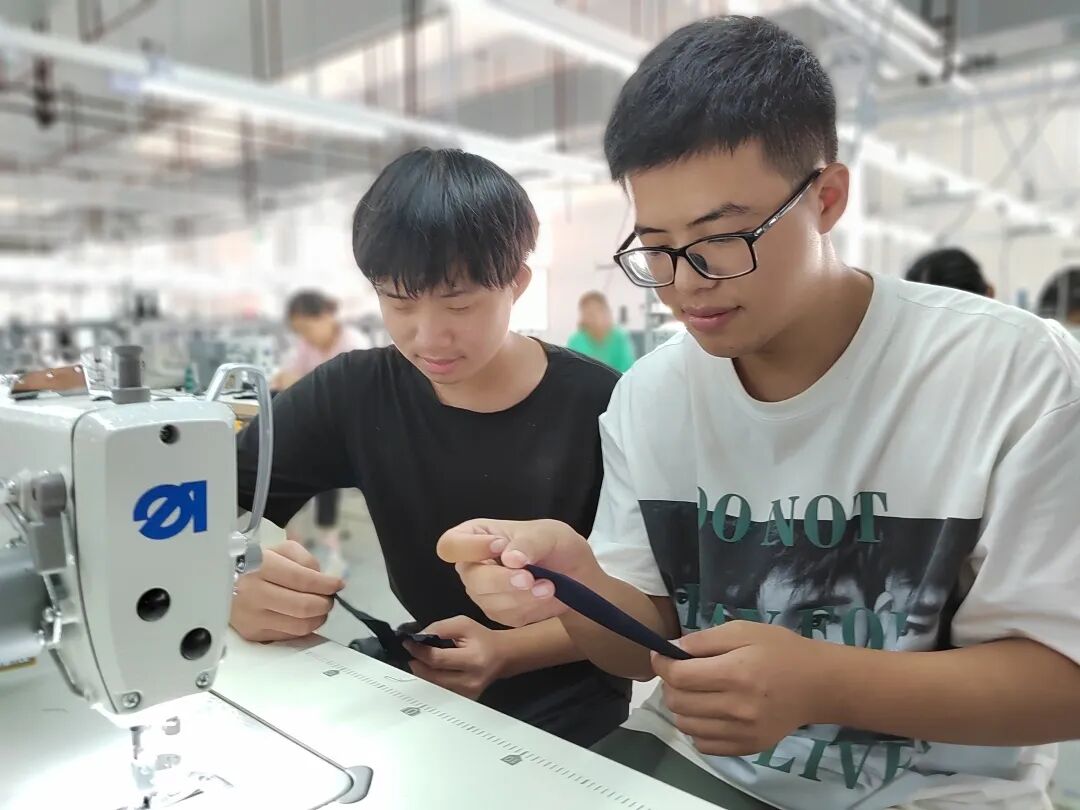 走进阳光(河南)服饰科技有限公司的培训车间,整齐的流水线上,一群充满朝气,充满干劲的年轻姑娘、小伙儿紧张有序的练习着、学习着,一派生机勃勃的景象,让人觉得格外美好!