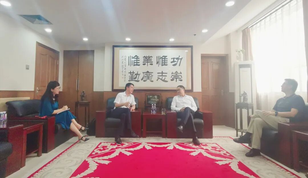 2022年9月13日,河南省服装行业协会常务副会长张勋、副会长郜虹赴北京拜访中国纺织品进出口商会,商会会长曹甲昌、副会长张锡安亲切接见张勋一行并座谈,纺织部主任王维东、服装部主任马英、副主任郭巍参与座谈。