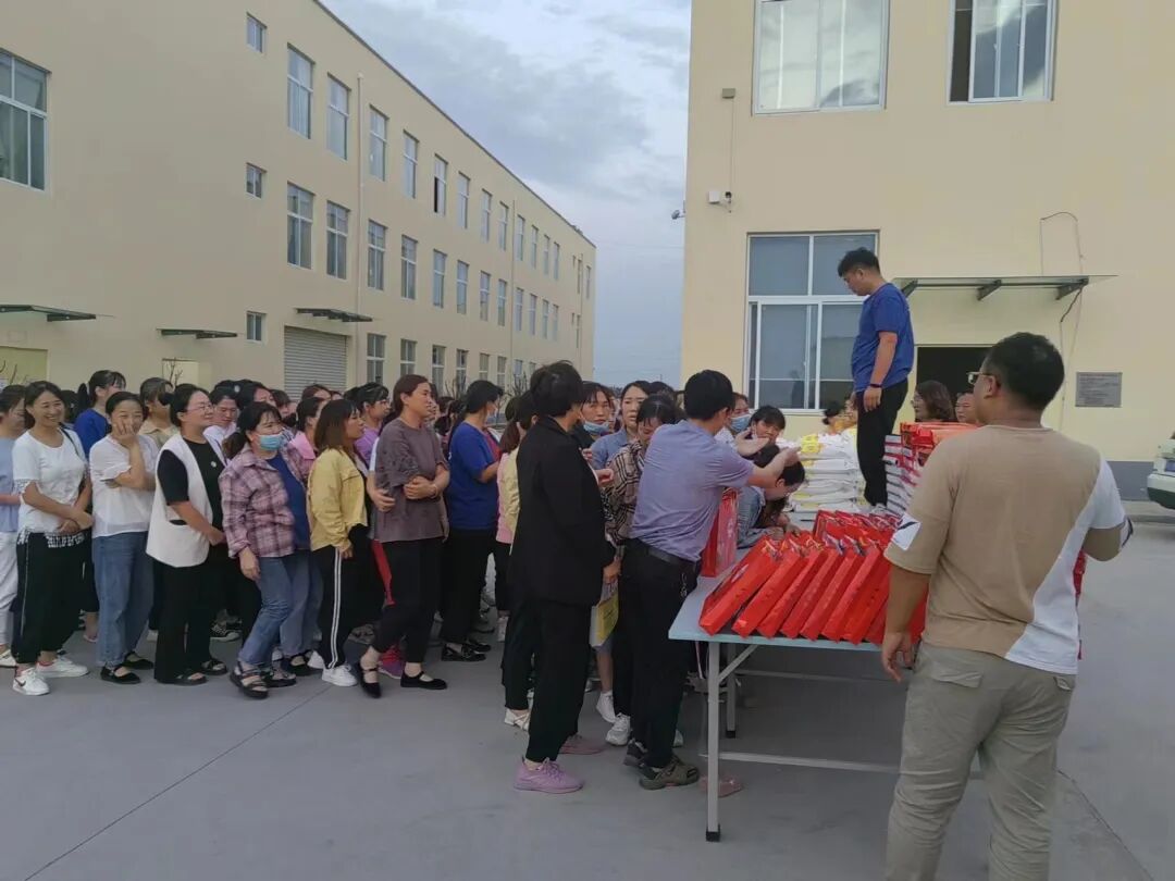 中秋佳节庆团圆,9月9日下午,河南卡顿地智能制造有限公司副董事长李光国亲自为员工发放中秋礼品,并送上诚挚的祝福,拿到礼品的巧媳妇们脸上洋溢着幸福的笑容。