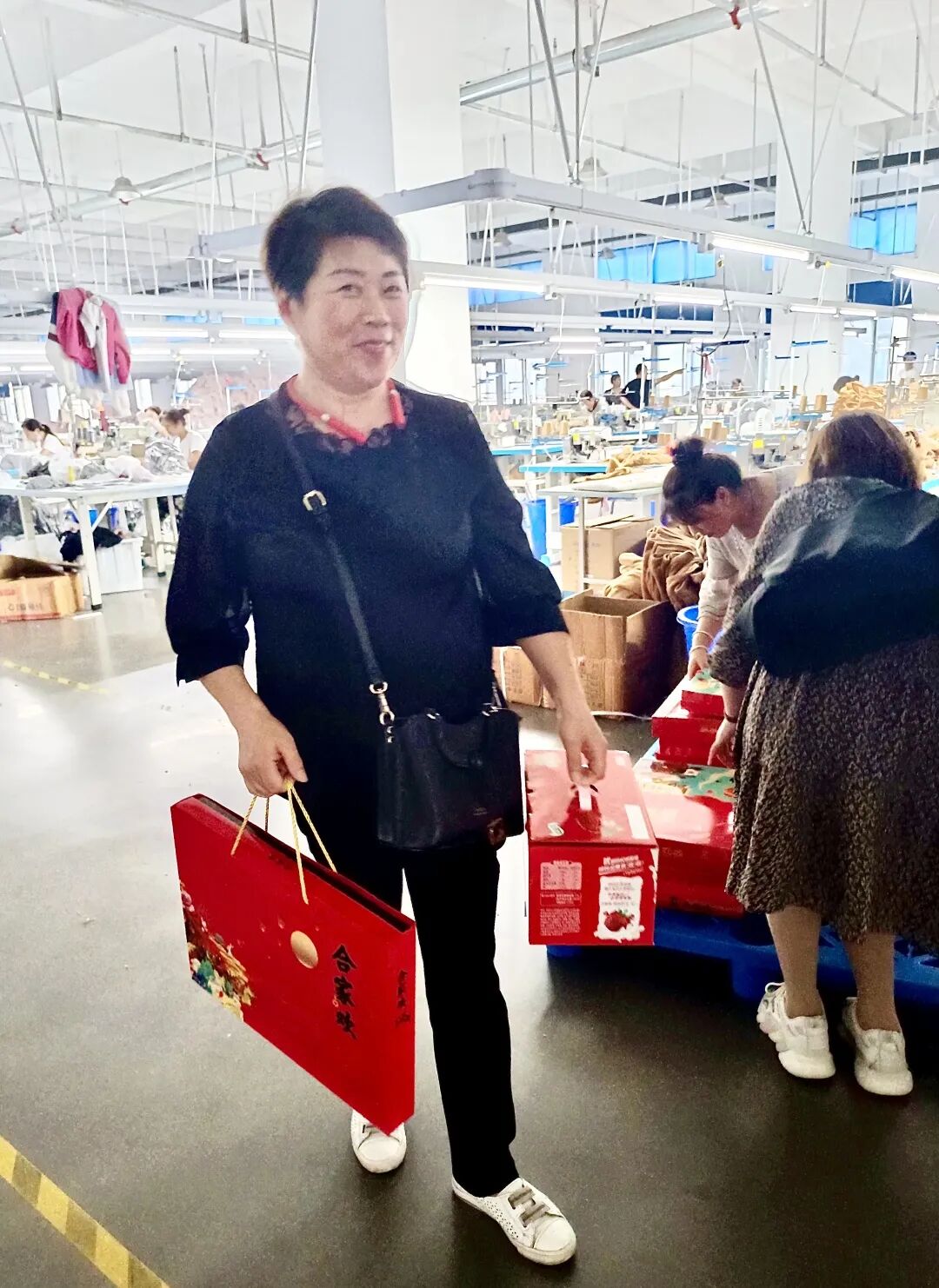双节来临之际,服装企业也为“巧媳妇”们送上了真挚的祝福和丰厚的礼品,巧媳妇们都把幸福写在了脸上!