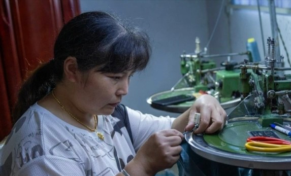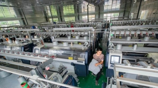 村民在针织厂干活