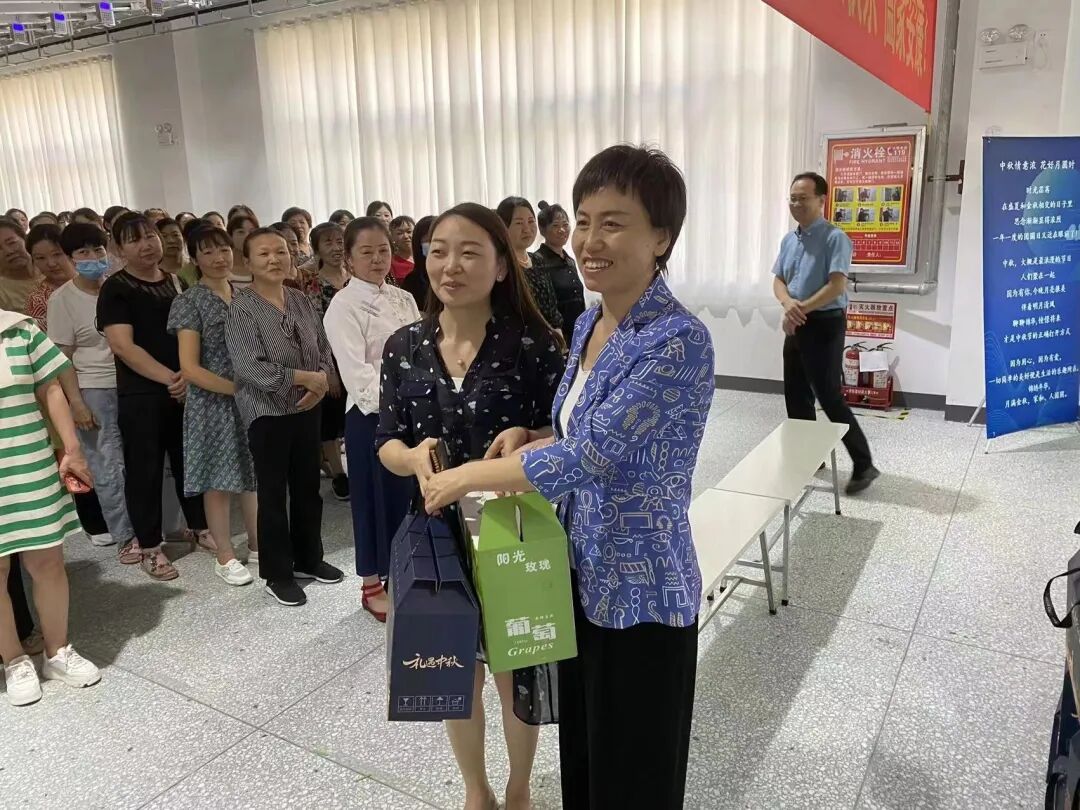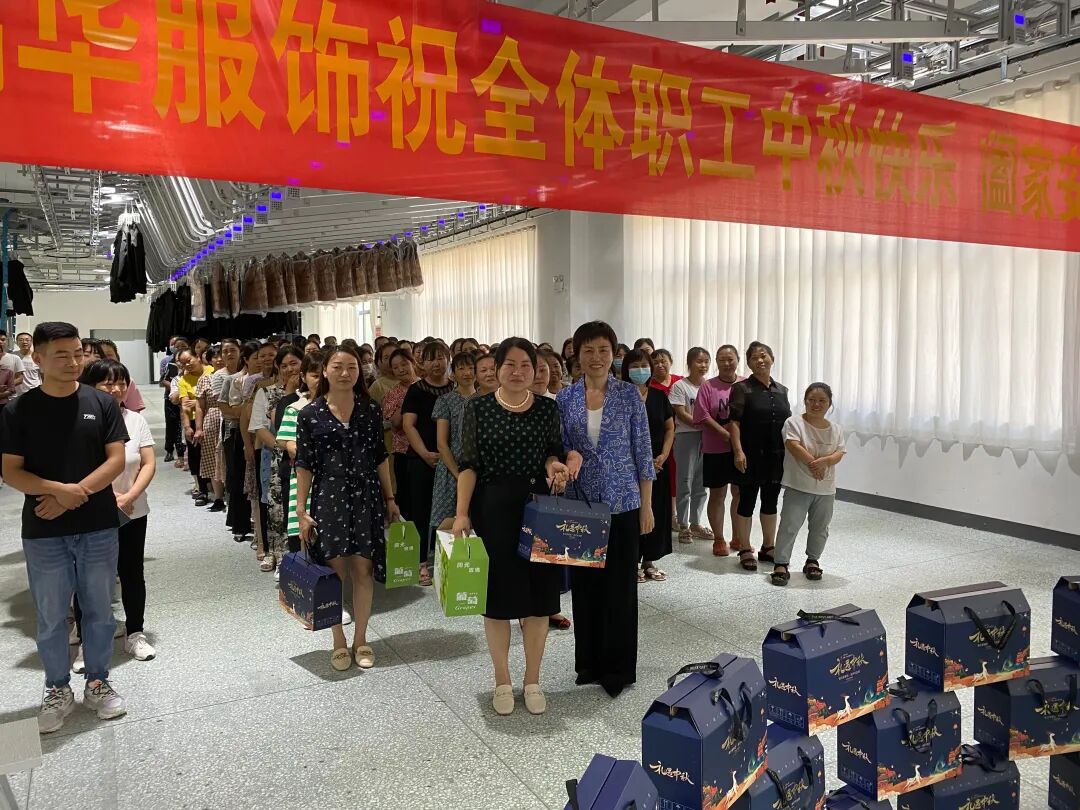 走访当天,恰逢锦华服饰为员工发放中秋礼品,曾玉杰县长来到生产车间慰问一线工人,与公司负责人一起为产业工人发放节日礼品,“巧媳妇”们高高兴兴接过礼品,把幸福写在了脸上。