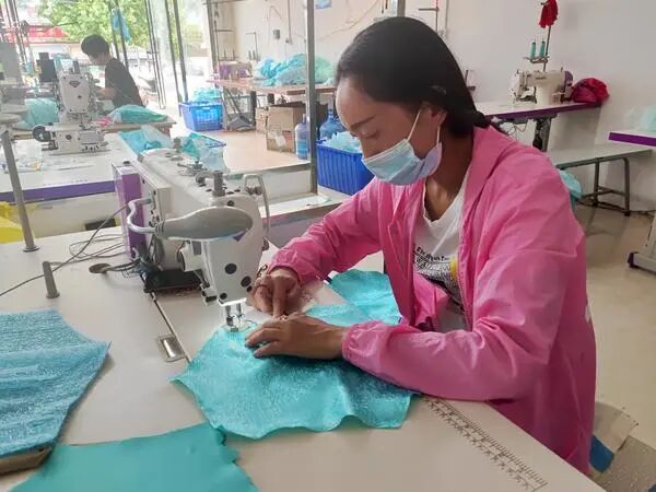 “我在华宝利服饰工作一年多了,在家门口的工厂上班,既能兼顾到家庭,也能赚到钱,我觉得挺好的。”河东村民李艳满意地说。