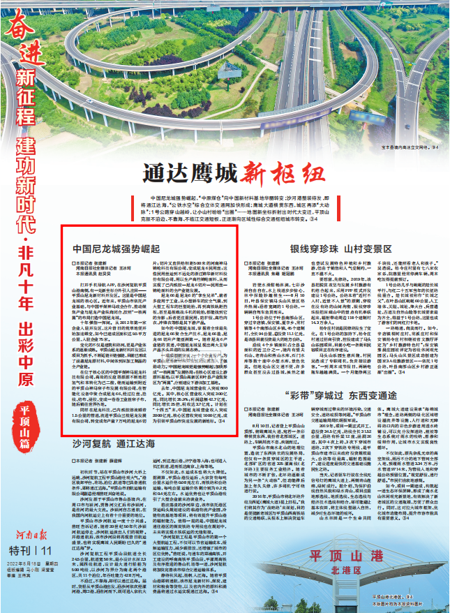 一项项创新突破,一个个企业投产,为平顶山尼龙新材料开发区的发展注入了强劲动力。中国尼龙城更是强势崛起,加快形成“一核两翼”发展格局:在核心区建设上游原料基地;以平顶山高新区和叶县产业集聚区为“两翼”,分别建设下游深加工基地。去年,中国尼龙城营业收入突破800亿元。其中,核心区营业收入突破300亿元,同比增长35.9%;利润总额42.7亿元,同比增长25倍,税收达3.7亿元。计划在“十四五”末,中国尼龙城营业收入突破2000亿元,核心区营收突破1000亿元,成为引领平顶山市快速发展的新地标。