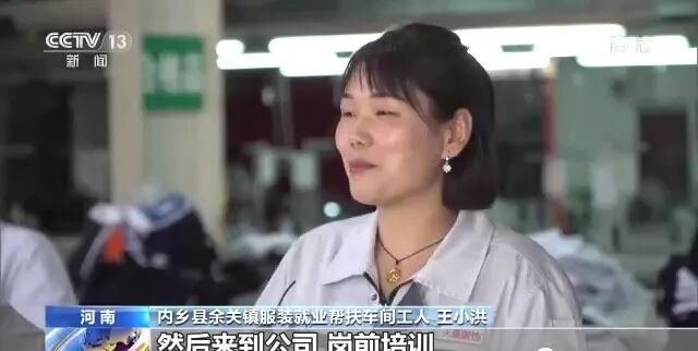 河南省内乡县服装车间员工王小洪说,之前啥都不会,然后来到公司岗前培训,每天补助60块钱生活费,现在一个月稳定收入能拿3000多块钱。